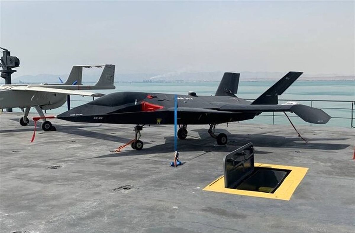 The drone carrier has been equipped with two models of the pilotless version of Iran’s homegrown stealth fighter jet “Qaher (Conqueror)”.